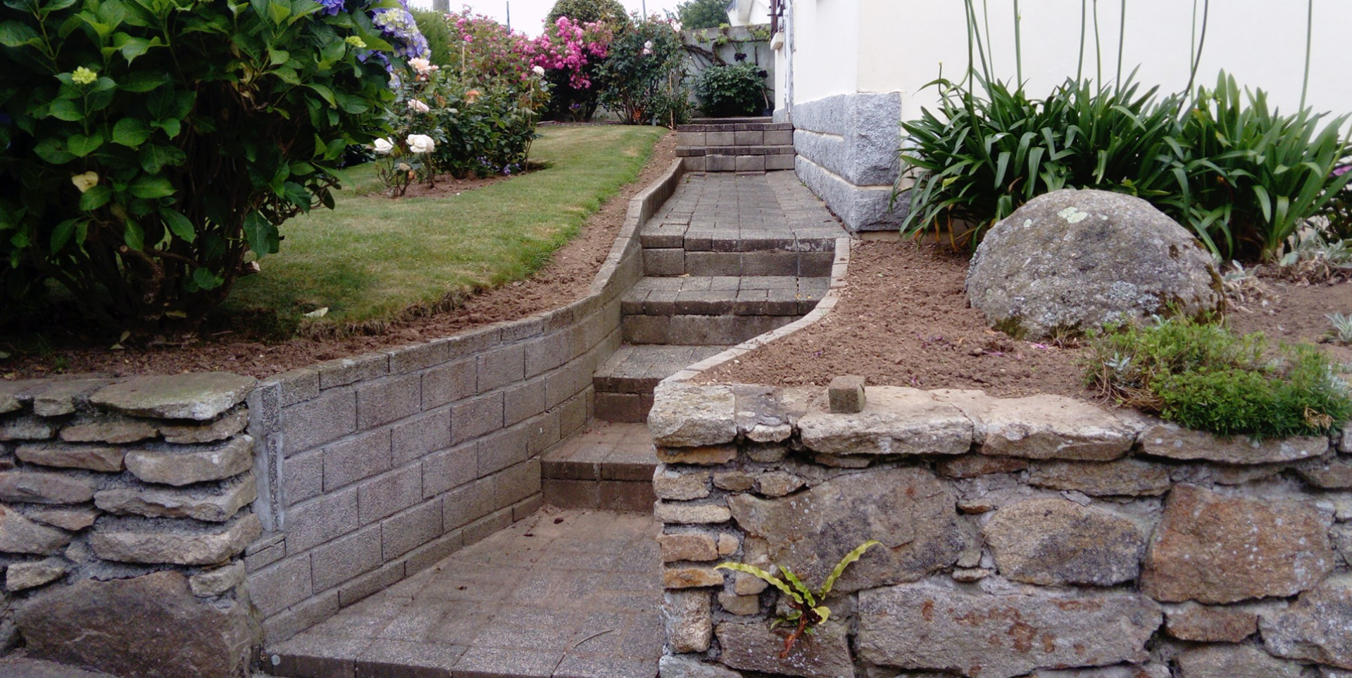 Nous concevons et créons une variété d'éléments en maçonnerie paysagère, tels que des parements en pierre, des aménagements divers, des murets en pierre, des joints de pierre, des bordures et des escaliers, pour sublimer votre jardin.